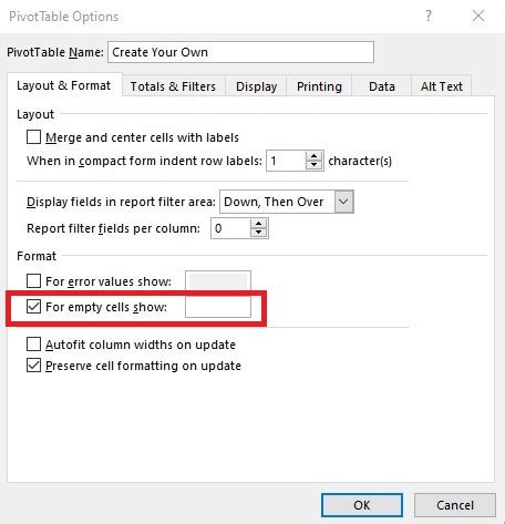 Click in the worksheet with the pivot table. Choose home >> styles >> conditional formatting >> new rule. I can not filter out the blanks because data in another column of the pivot tabe would get hidden. Web i think that setting applies only to the numbers in the value area section of the pivot table. Manually change the cell's value to contain only a single space by pressing the space bar and then enter. Now all cells in that field that previously displayed as (blank) should appear visually blank. Web to find and replace blanks: Web removing the word blank in pivot table labels. So i tried starting fresh, creating a new pivot table. Web is there a way to hide the word ('blank), and just let the cell be blank when there is no value for the cell in the main database/spreadsheet. Click in the worksheet with the pivot table.